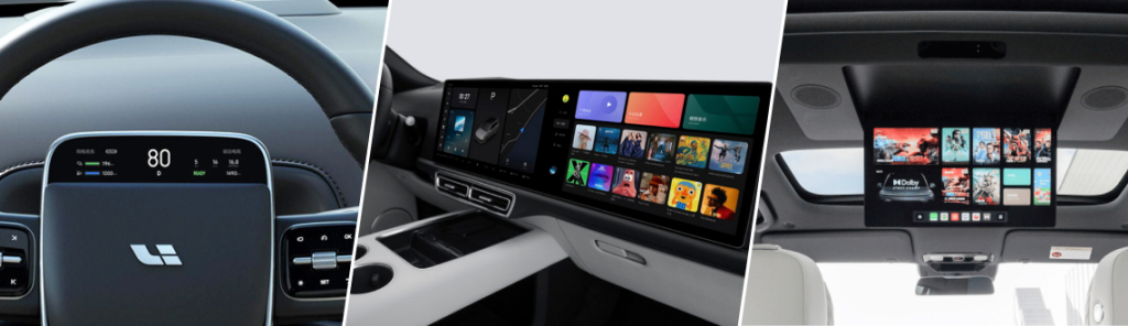 В салоне L9 расположено пять мониторов. Однако, несмотря на такое внушительное количество, всегда на виду всего лишь два из них. HUD-монитор предназначен только для водителя, монитор на ступице отличается небольшими размерами, а задний экран является складным. На передней панели расположены два высокочетких экрана с управлением автомобилем и медиасистемой. Оба обладают интуитивным интерфейсом.