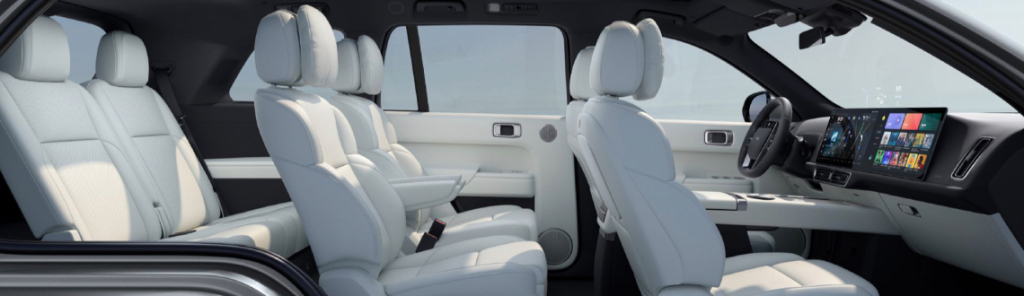 Вместимость салона — шесть человек, и каждое место создано для максимального удобства. Сиденья и руль выполнены из благородной Nappa, а панели обтянуты высококачественной экокожей. Особое внимание уделяется пассажирам второго ряда, где установлены устройства для погружения в музыку класса хай-энд, оттоманка и раскладной столик. Каждая поездка на Li L9 превращается в уникальный опыт благодаря продуманному дизайну и функциональности салона.