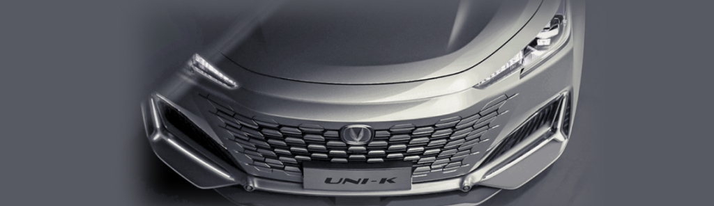 Changan UNI-K имеет стремительный силуэт, который выделяет его в дорожном потоке, как бы символизируя решительность и уверенность владельца. В передней части главным акцентом является безрамная решетка радиатора, состоящая из вырезанных прямо на бампере шестиугольных элементов. Сзади же внимание привлекает мощный четырехствольный выхлоп, добавляющий внешнему облику нотку агрессивности.